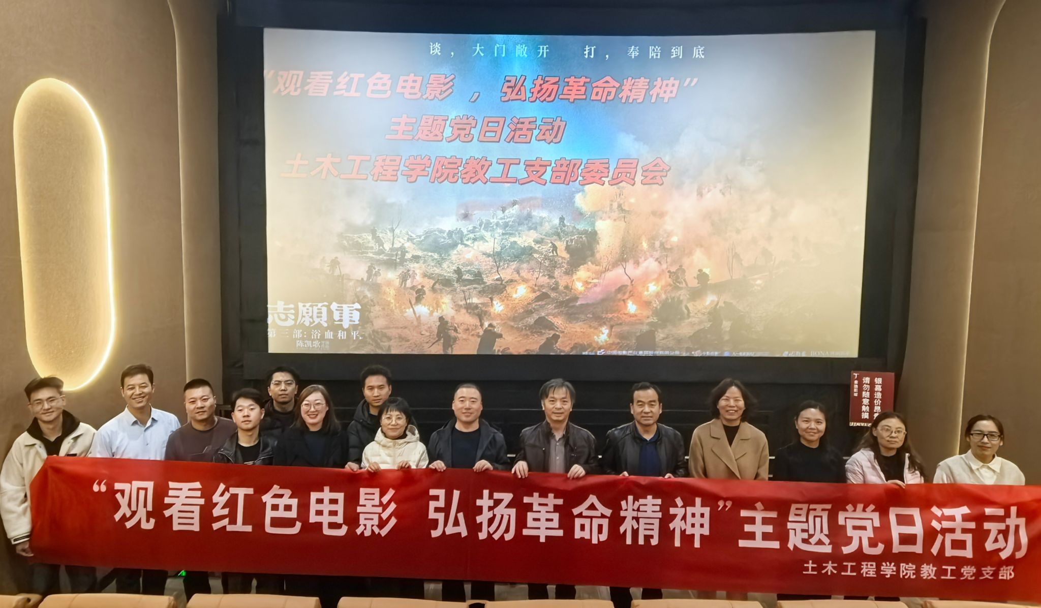 通过集中观看《志愿军·浴血和平》红色电影,以观影为桥传承红色基因,以经典为媒筑牢信仰之基,切实推动党史学习教育常态化、长效化。下一步,土木工程学院教工党支部将持续丰富党建学习教育形式,以红色观影、主题分享、实地研学等多样化活动为载体,推动红色基因深度融入土木工程、水利工程等血脉。同时,将思想引领与岗位实践紧密结合,引导全体党员干部从历史中汲取智慧力量,在教育事业、科学研究中践行初心使命,以更加昂扬的奋斗姿态、更加务实的工作作风,立足岗位、担当作为,为土木工程学院的高质量发展注入红色动能,为中国式现代化建设贡献力量。