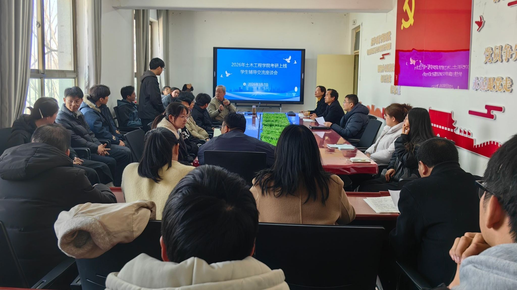 3月7日,土木工程学院召开2026年考研上线学生辅导座谈会。学院负责人、教科办负责人、2022级班主任、教研室主任及31名考研上线学生参加。